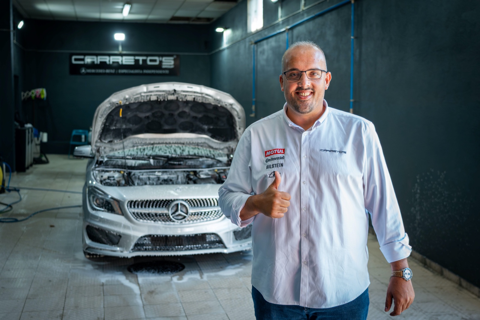 A especialização em veículos da marca Mercedes-Benz foi a ideia que fez toda a diferença. Surgiu da observação de que, em Portugal, os condutores e as condutoras costumam deixar de levar os seus carros novos à oficina concessionária da marca após três a quatro anos. Foi sobre este fundamento que o empresário construiu o conceito, que integra a proximidade aos clientes e a transparência como valores-chave. “O preço é o que o cliente paga, o valor é o que o cliente leva. E o que é o valor? A proximidade com o serviço, a transparência nas fotografias, a rapidez no contacto, a sinceridade na passagem de informação. As pessoas apreciam isso. E é precisamente porque somos transparentes que temos mais negócio. A maior parte das oficinas automóveis não consegue ser transparente. Não porque não queiram ou não saibam. Simplesmente, não têm estrutura organizada.” O Carreto’s Group, por sua vez, tem uma equipa sólida, possui uma estrutura organizada e trabalha com método. Existem guias e padrões de qualidade.