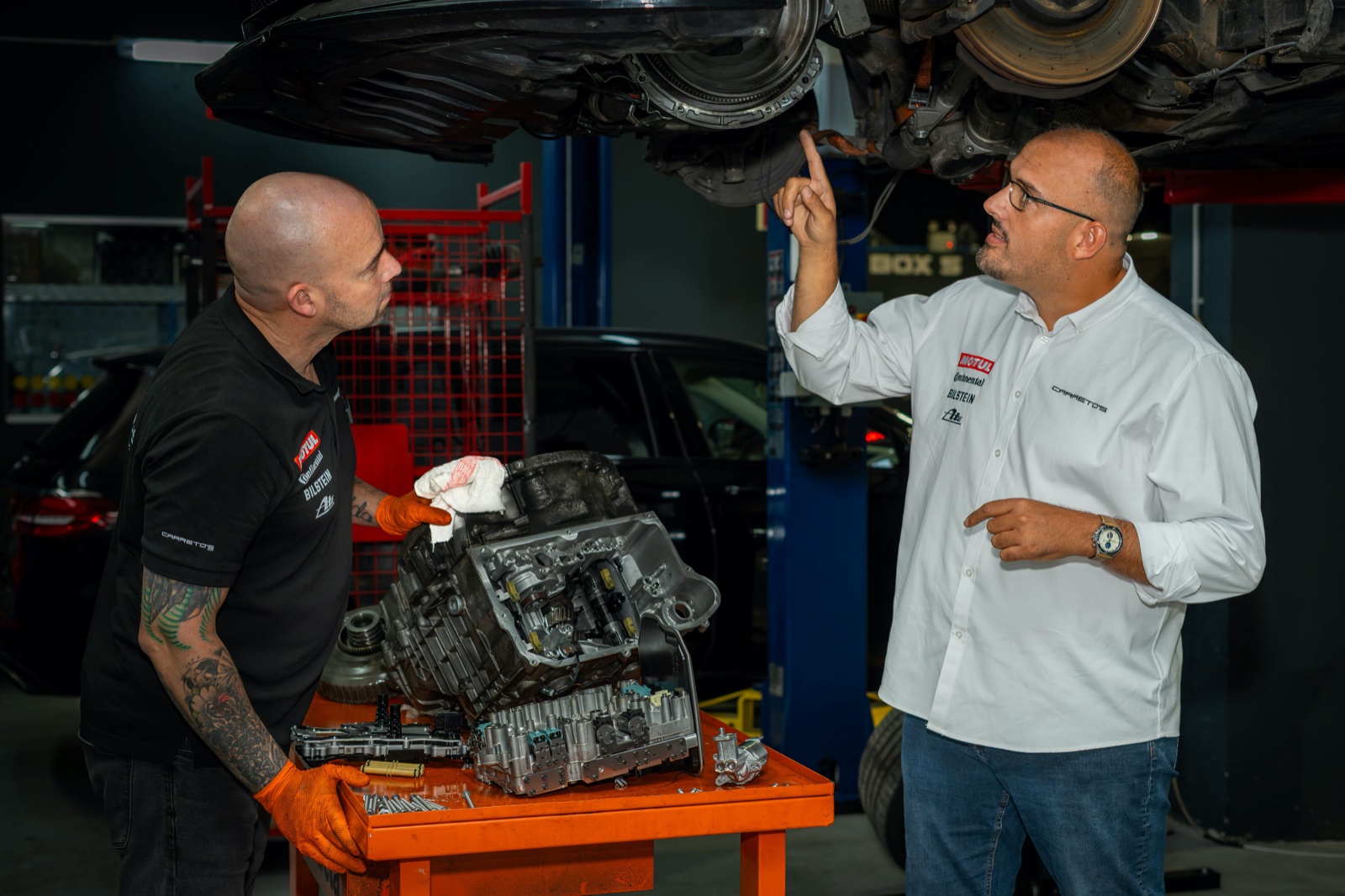 A colaboração com a Mewa é parte integrante da estratégia de crescimento. O prestador de serviços têxteis assegura que os mecânicos das oficinas da Carreto no Cacém, em Lisboa e em Almada, têm sempre à disposição panos de limpeza e mantas absorventes limpos. A Mewa recolhe os têxteis para lavagem e entrega-os novamente após o rigoroso controlo de qualidade de várias fases. “Li um artigo na net, numa revista de oficinas, sobre o sistema da Mewa, e pensei: Uau, este sistema vai-me tirar a preocupação de ter aqui sempre panos limpos e também já não preciso de dar seguimento aos resíduos. Percebi logo que a Mewa me conseguia oferecer toda esta organização e estrutura. Para além disso, os panos e as mantas são reutilizáveis. E pensei: Ótimo, com um gesto simples consigo tornar a Carreto’s ainda mais amiga do ambiente”, recorda David Carreto. Quando o colaborador da Mewa visitou a oficina em Lisboa, em setembro de 2024, assinaram logo contrato. Desde então, todo o Grupo Carreto’s opera com os panos de limpeza e as mantas absorventes de óleo. “Estou completamente satisfeito. Os meus mecânicos conseguem trabalhar mais rápido porque os panos são bem mais absorventes. E também estão mais motivados porque notam: Não é uma coisa qualquer que me estão a pôr à frente para eu usar, mas um pano profissional. A Mewa trouxe-nos mais tranquilidade, estrutura e limpeza no negócio. E, aliás: A Mewa faz parte do plano de negócios de cada nova oficina Carreto's.”