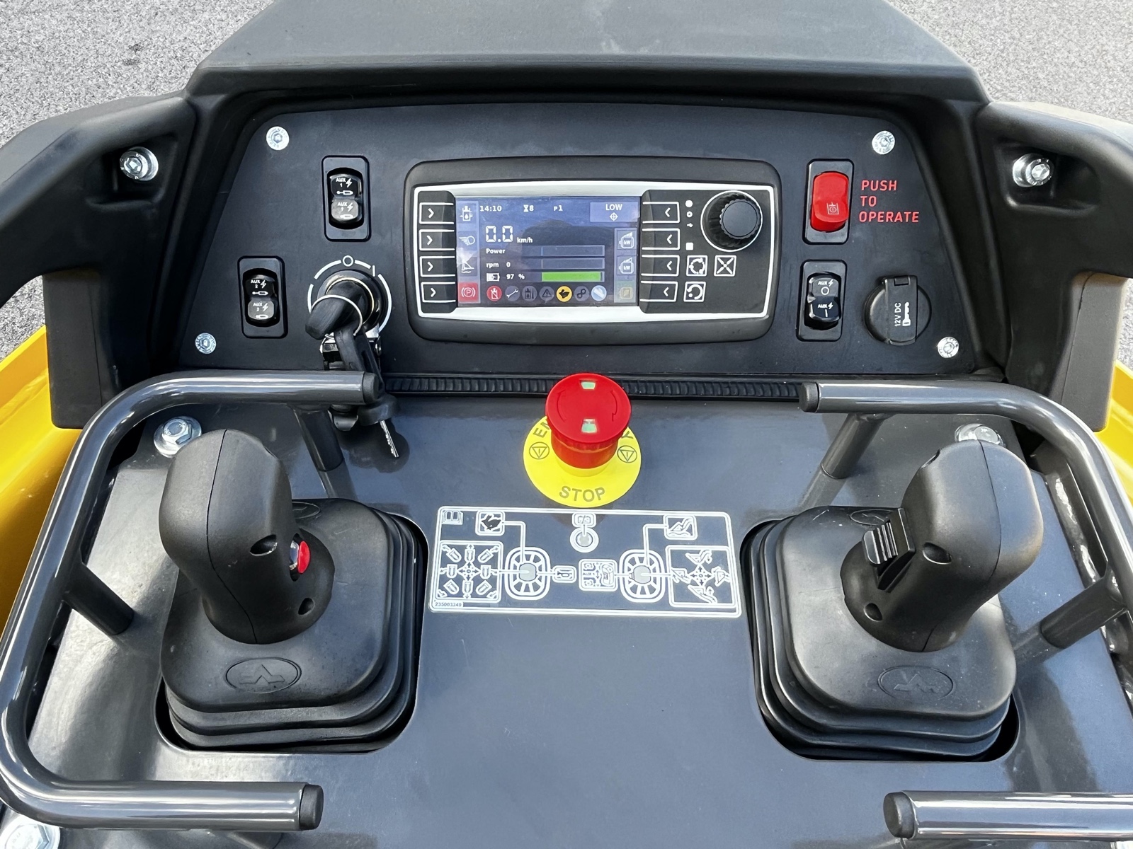 A ergonomia é reforçada pelos novos joysticks de pega melhorada, proporcionando conforto e precisão adicional na operação.