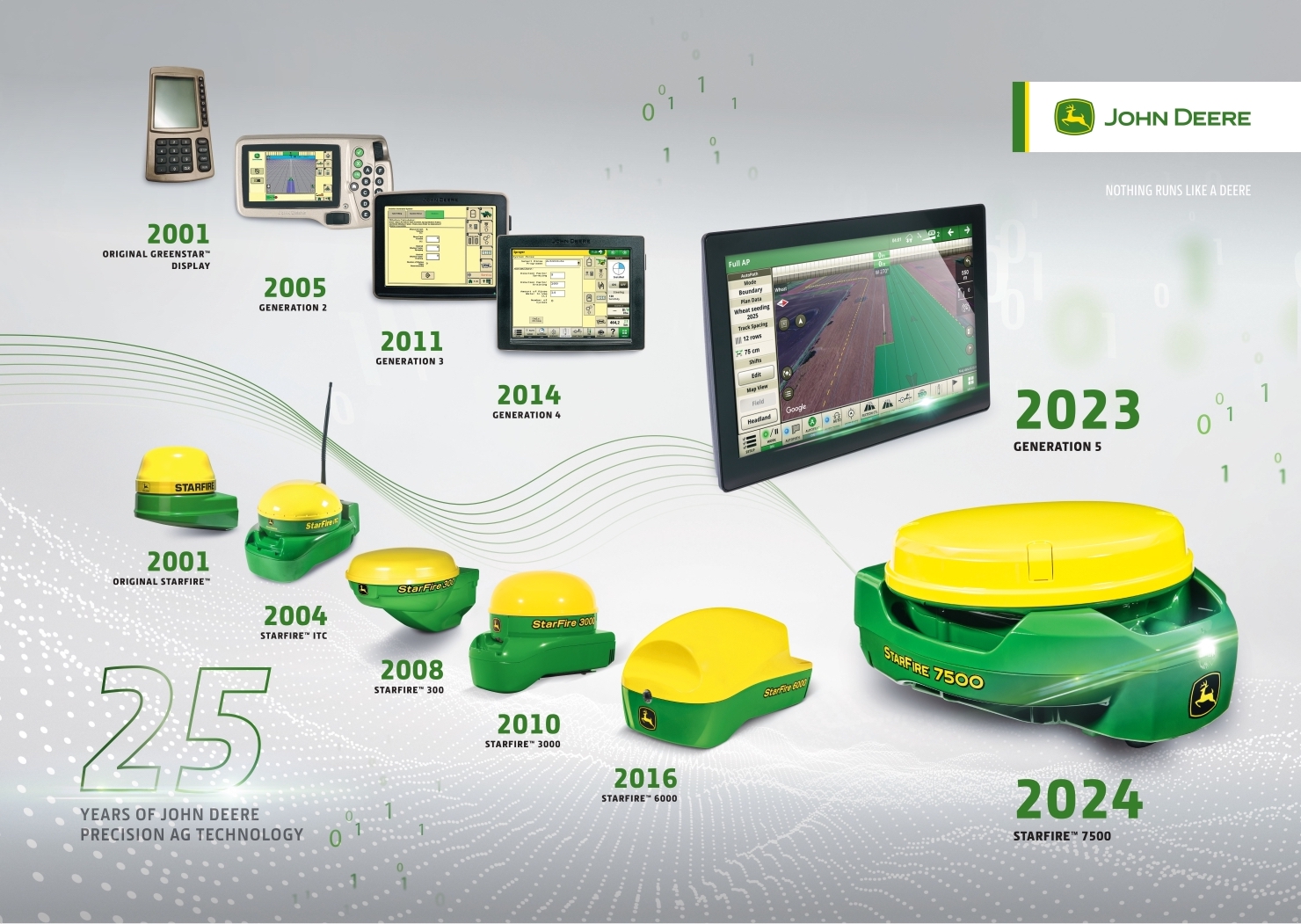 Mais recentemente, foram também desenvolvidas outras tecnologias que elevaram a fasquia da agricultura de precisão: o sensor NIR HarvestLab™ 3000 (2017), capaz de medir a humidade e os nutrientes da forragem durante a colheita; a pulverização seletiva See & Spray™ (2018), com inteligência artificial que deteta infestantes e reduz até 70% o uso de herbicida; ou a interface DataConnect (2019), que integra dados de equipamentos de diferentes marcas num único ecrã.