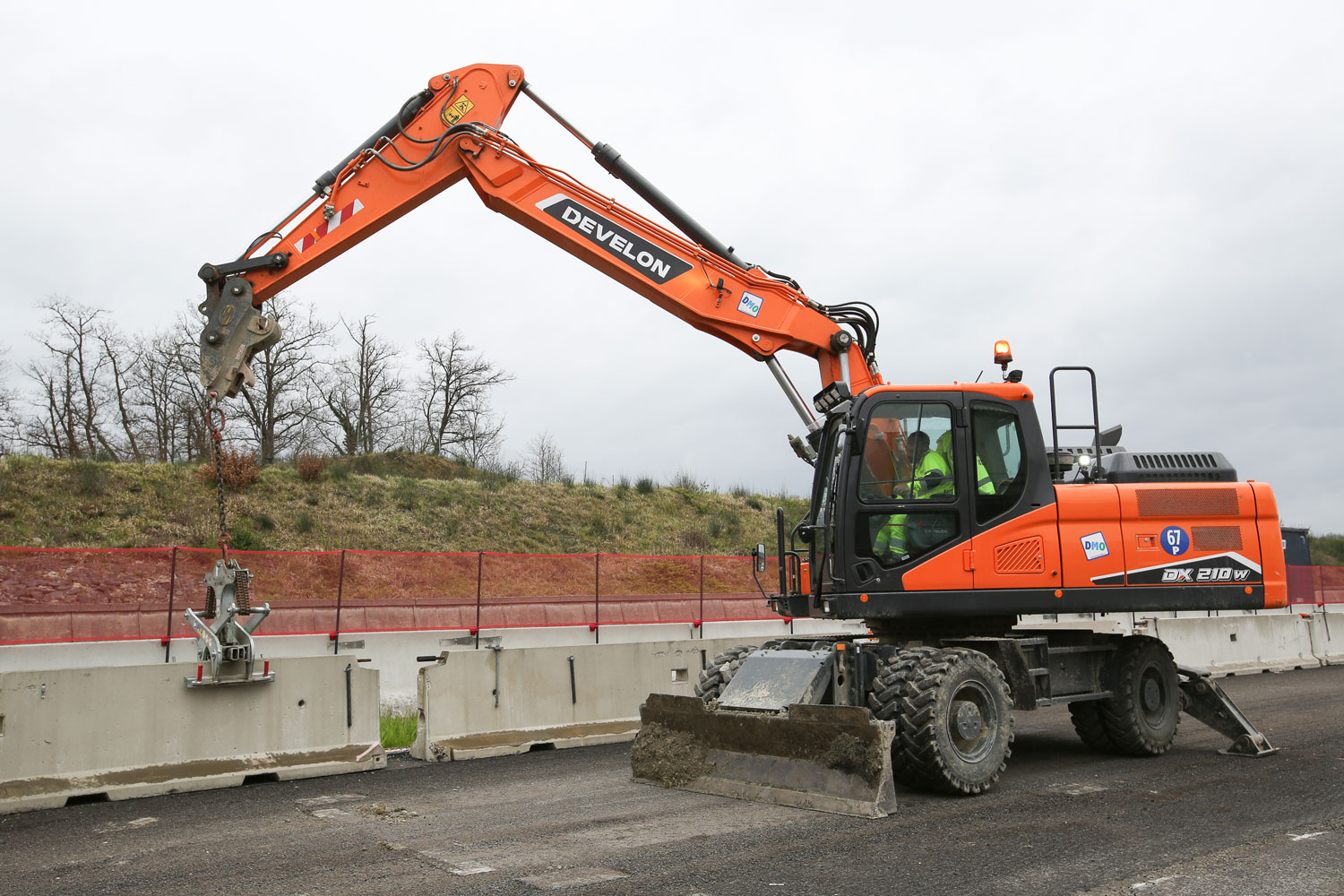 Neste contexto, destaca-se a escavadora de rodas DX210W-7, utilizada na movimentação de barreiras de betão e em outras operações críticas. A sua capacidade de circulação em estrada constitui uma vantagem operacional relevante, tendo sido necessária uma homologação específica para este modelo, dada a sua dimensão.