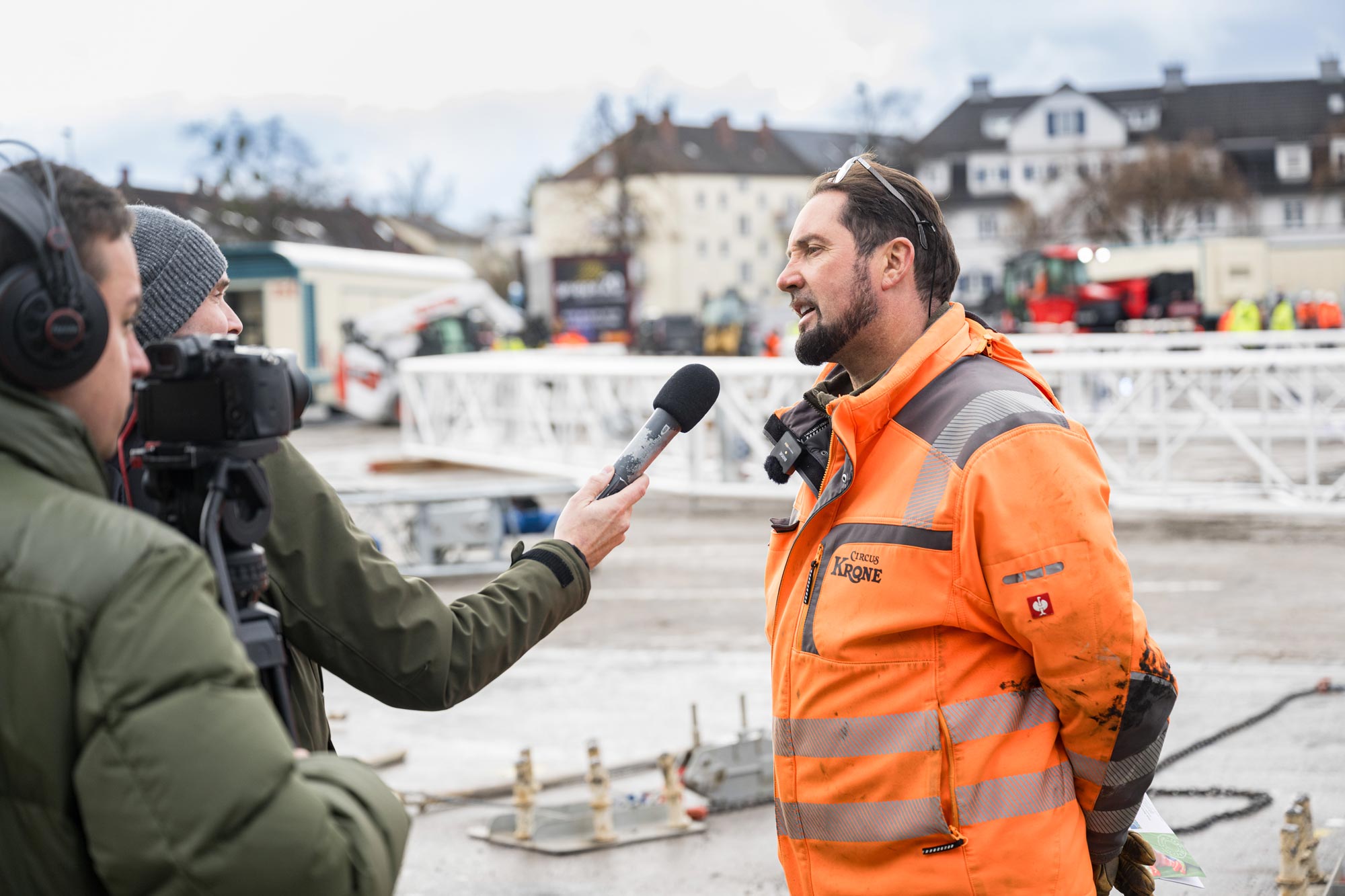 Fundado em 1905, o Circus Krone percorre anualmente cerca de 30 cidades na Alemanha, transportando uma das maiores tendas da sua categoria. A dimensão da estrutura — com uma cúpula de 17 metros de altura e uma área total de lona que ronda os 10.000 m² — exige um processo de montagem altamente exigente, onde a estabilidade é crítica.