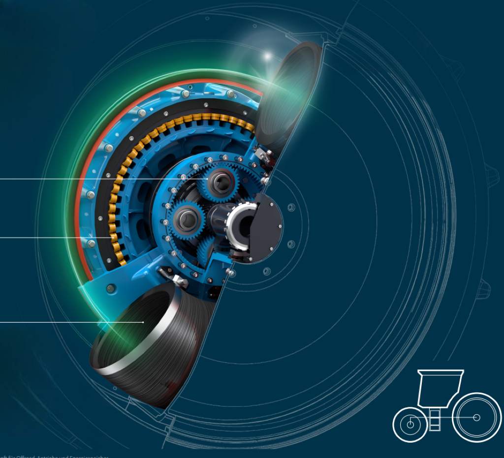 O conceito não se limita ao armazenamento de hidrogénio. Está associado a um sistema integrado que combina rodas com depósito de hidrogénio e motores elétricos incorporados nas próprias rodas. Esta abordagem permite uma arquitetura mais modular e eficiente, com menor dependência de transmissões mecânicas, redução de perdas energéticas e maior controlo individual sobre cada roda — uma lógica já presente na eletrificação do transporte, agora adaptada à maquinaria pesada. Outro aspeto relevante é a utilização de motores sem recurso a terras raras, reduzindo a dependência de matérias-primas críticas e contribuindo para uma maior sustentabilidade do sistema ao longo do seu ciclo de vida.
