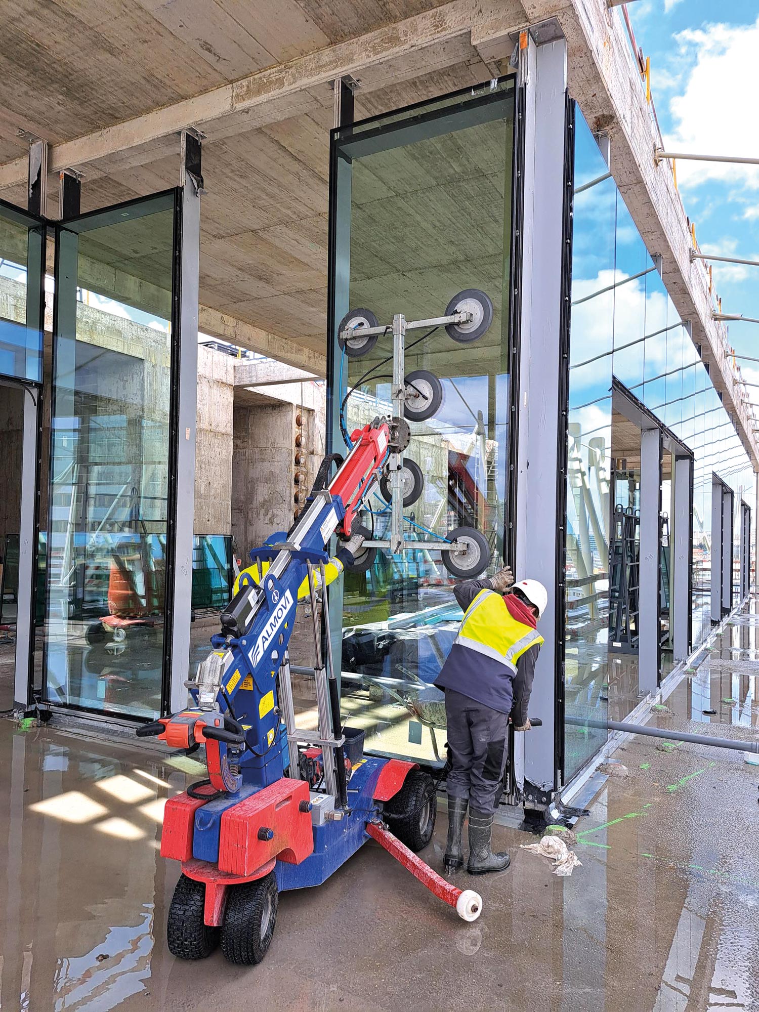 A colocação de vidros de fachada, cada vez maiores e mais pesados, exige equipamentos que garantam estabilidade total durante a movimentação e posicionamento. As ventosas de elevação e os robôs de vidro permitem manobras seguras, precisas e repetíveis, mesmo em fachadas de acesso limitado.