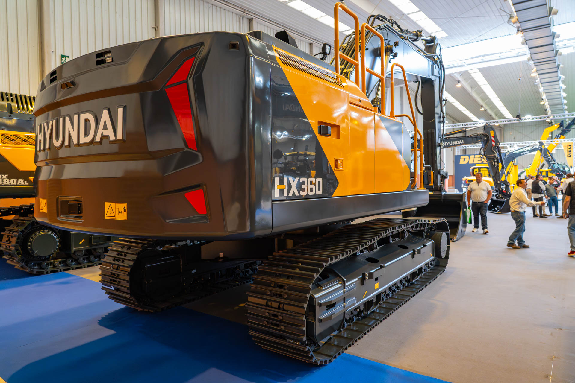 No centro da exposição esteve a HX360, uma escavadora de rastos posicionada no segmento das 36 a 41 toneladas, equipada com motor até 227 kW (304 cv) e capacidades de balde na ordem dos 2 m³. Trata-se de uma máquina concebida para aplicações exigentes, onde a produtividade e a robustez são determinantes.