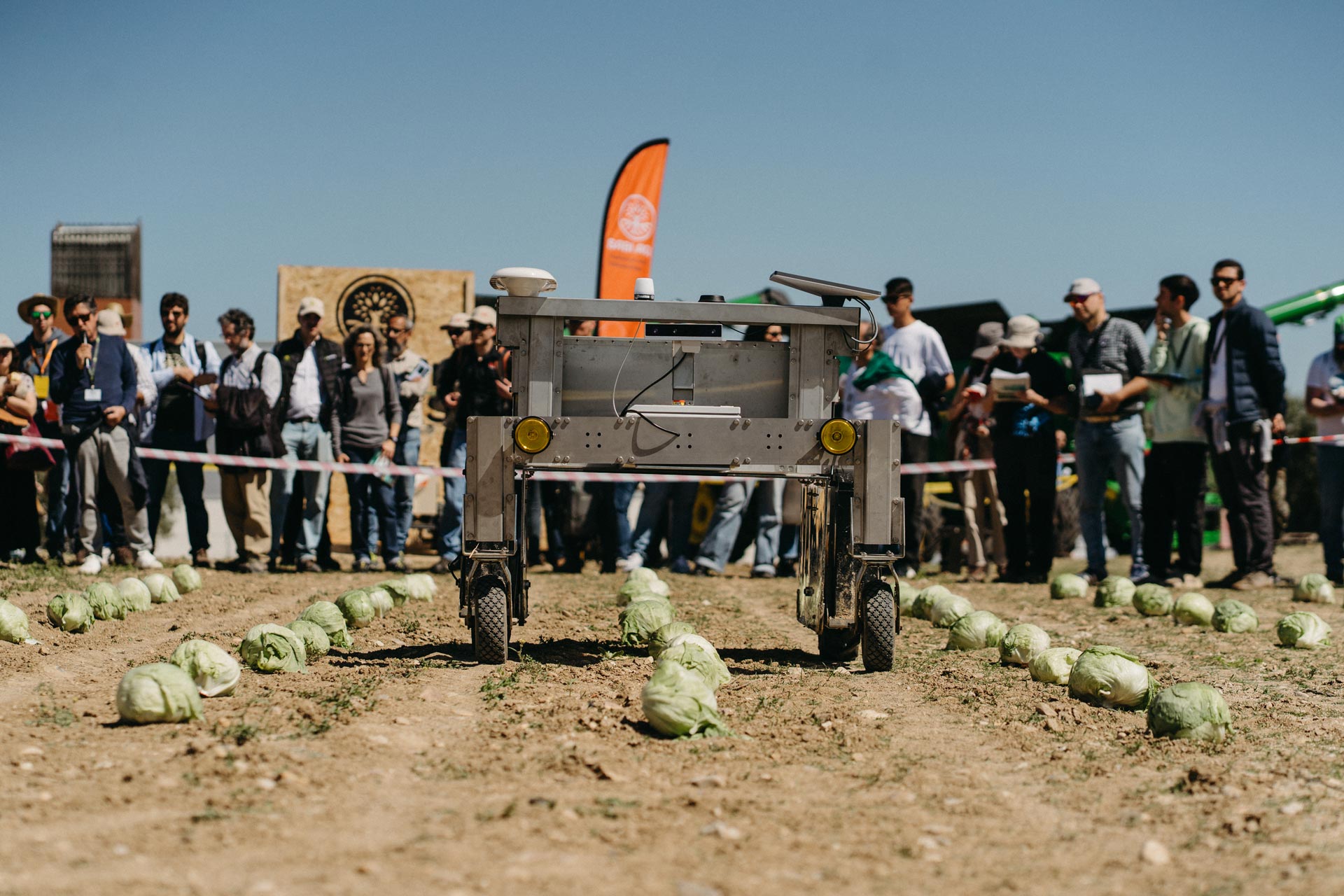 Um dos momentos centrais da jornada foi o desfile e demonstração de robots agrícolas em condições reais de trabalho. Ao todo, foram apresentadas 18 soluções autónomas, evidenciando a maturidade crescente da agrorrobótica em áreas como o controlo de infestantes, pulverização de precisão, navegação autónoma e apoio à colheita.