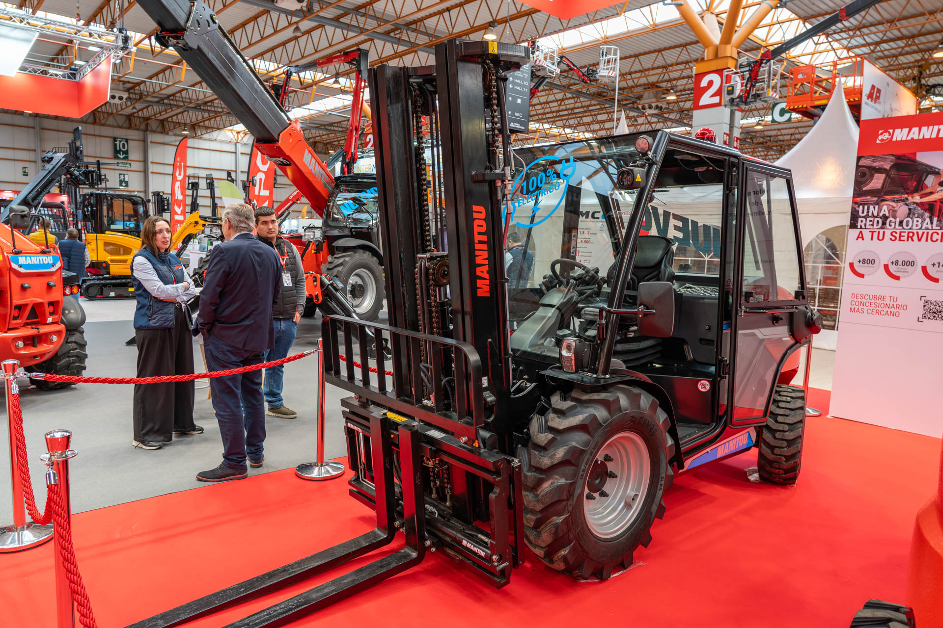 Entre os modelos em destaque esteve o manipulador telescópico MT 1840e, um equipamento 100% elétrico com 17,55 metros de altura de elevação e capacidade de 4 toneladas, equipado com bateria de 63 kWh, capaz de assegurar uma jornada completa de trabalho e reduzir significativamente os custos de manutenção face às versões térmicas.